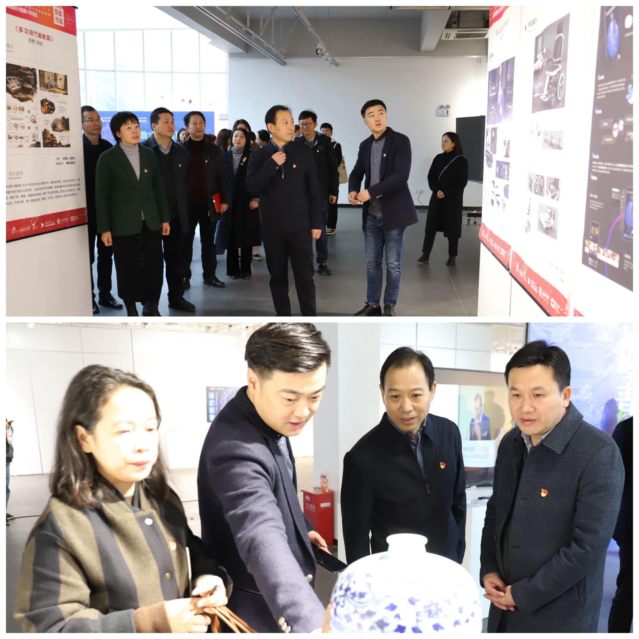 会前,与会人员参观“湖工大设计”四十五周年庆系列展览、“艺苑流芳”院史馆、艺术设计学院党建创新中心。