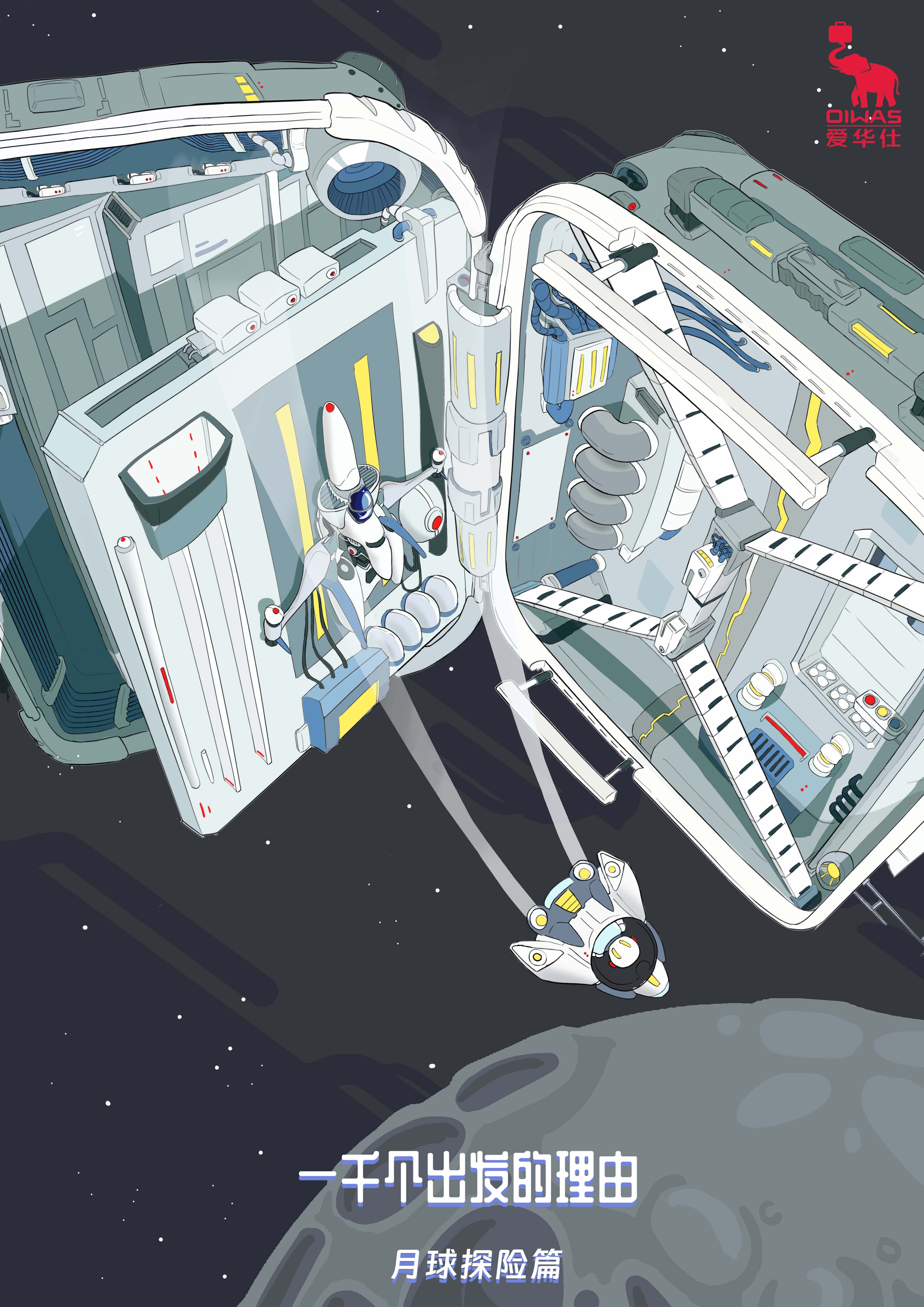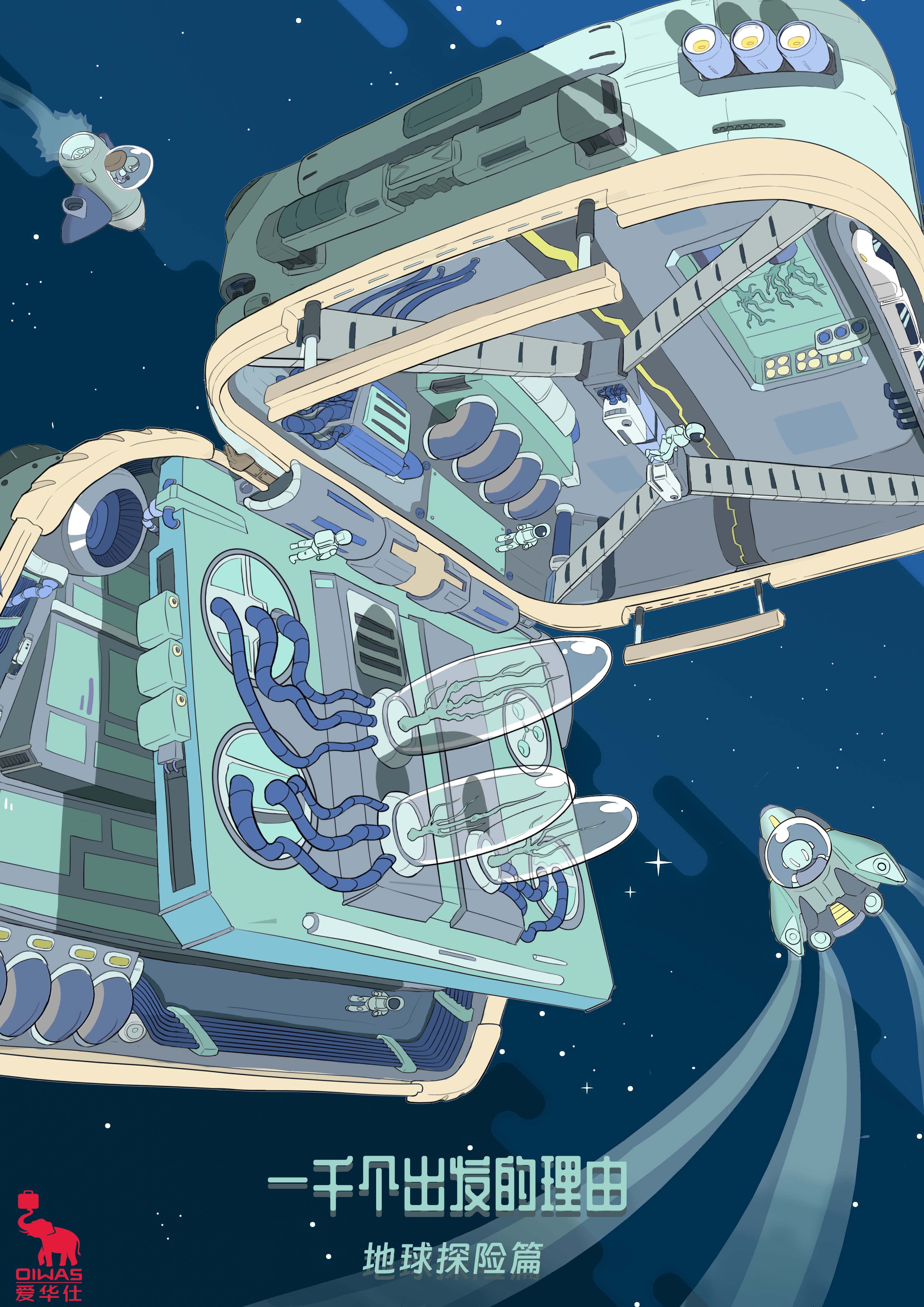 《一千个出发的理由》不局限在箱包的基本功能里,将箱包变为巨大的宇宙空间站,人们在箱中生活工作,跟随爱华仕一起辗转各个星球卫星,眼中不只是山水美景,还有无尽的银河,不但要带着箱包周游世界,更要坐上箱包傲游宇宙。