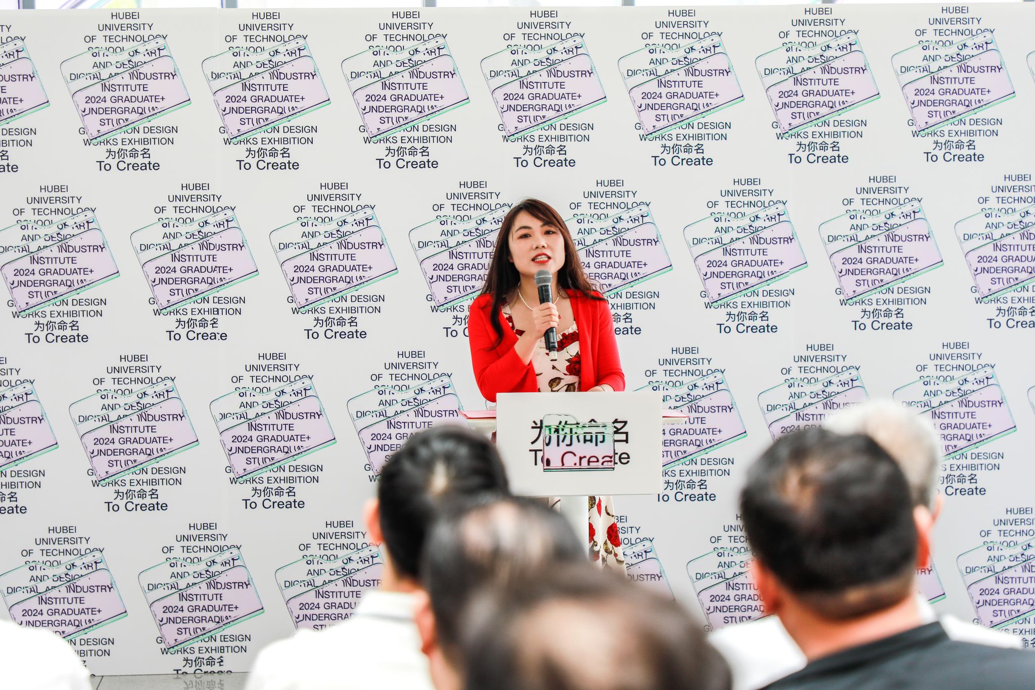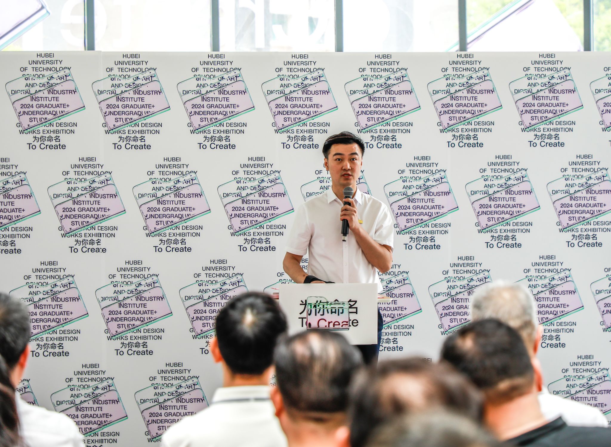 湖北省高等学校毕业生就业指导服务中心主任尹云波致辞,他对学院在过往46年的教育成果表示赞扬,对湖工大设计的品牌表示高度认可,希望毕业生们持续为中国梦的美丽图案添上湖工大设计的鲜亮色彩。