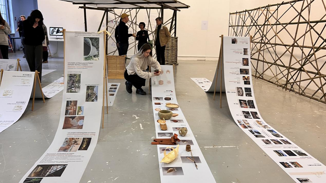 设计实践结束,中法师生团队在第戎国立高等艺术学院呈现“竹语”设计成果展。这些作品既蕴含了竹子的优雅美感,也呈现了竹子在城市环境中的实用性和可持续发展的潜力。