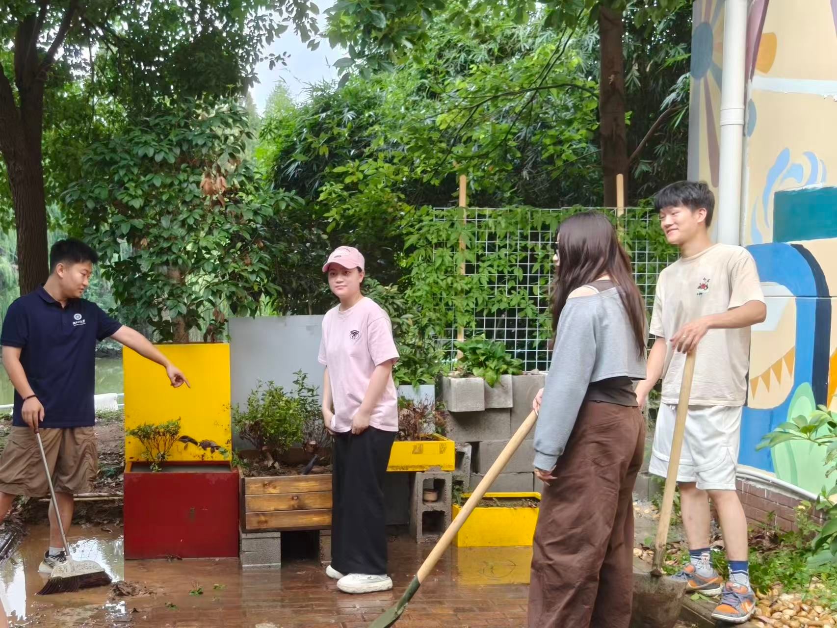 活动中,同学们自带清扫工具主动加入,或分工擦拭公共区域座椅、窗台,或合力清理绿化带内的杂物、落叶,或细致规整共享空间的物品摆放。大家干劲十足,相互配合,不放过任何卫生死角,欢声笑语间满是对社区环境的爱护之情。