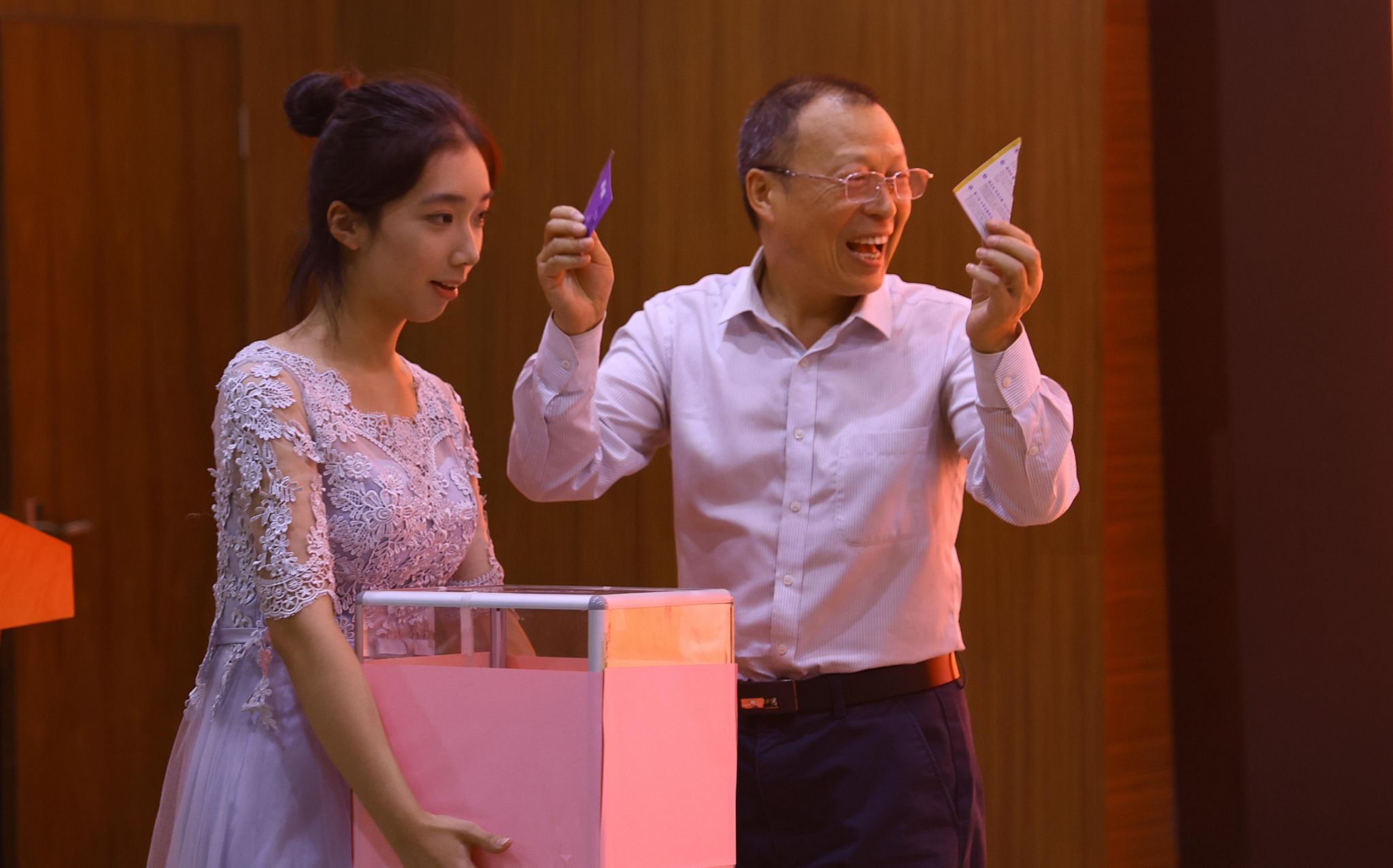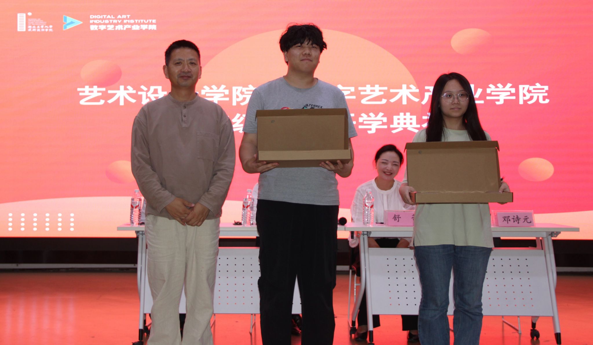 典礼现场还设置了备受期待的“艺启出发”迎新抽奖环节。艺术设计学院副院长周承君上台抽取幸运新生,数字艺术产业学院副院长邓诗元为获奖同学颁发奖品。一次次幸运揭晓引发全场掌声与欢呼声,为开学典礼增添了欢乐与惊喜,也让新生们感受到学院的用心与关怀。