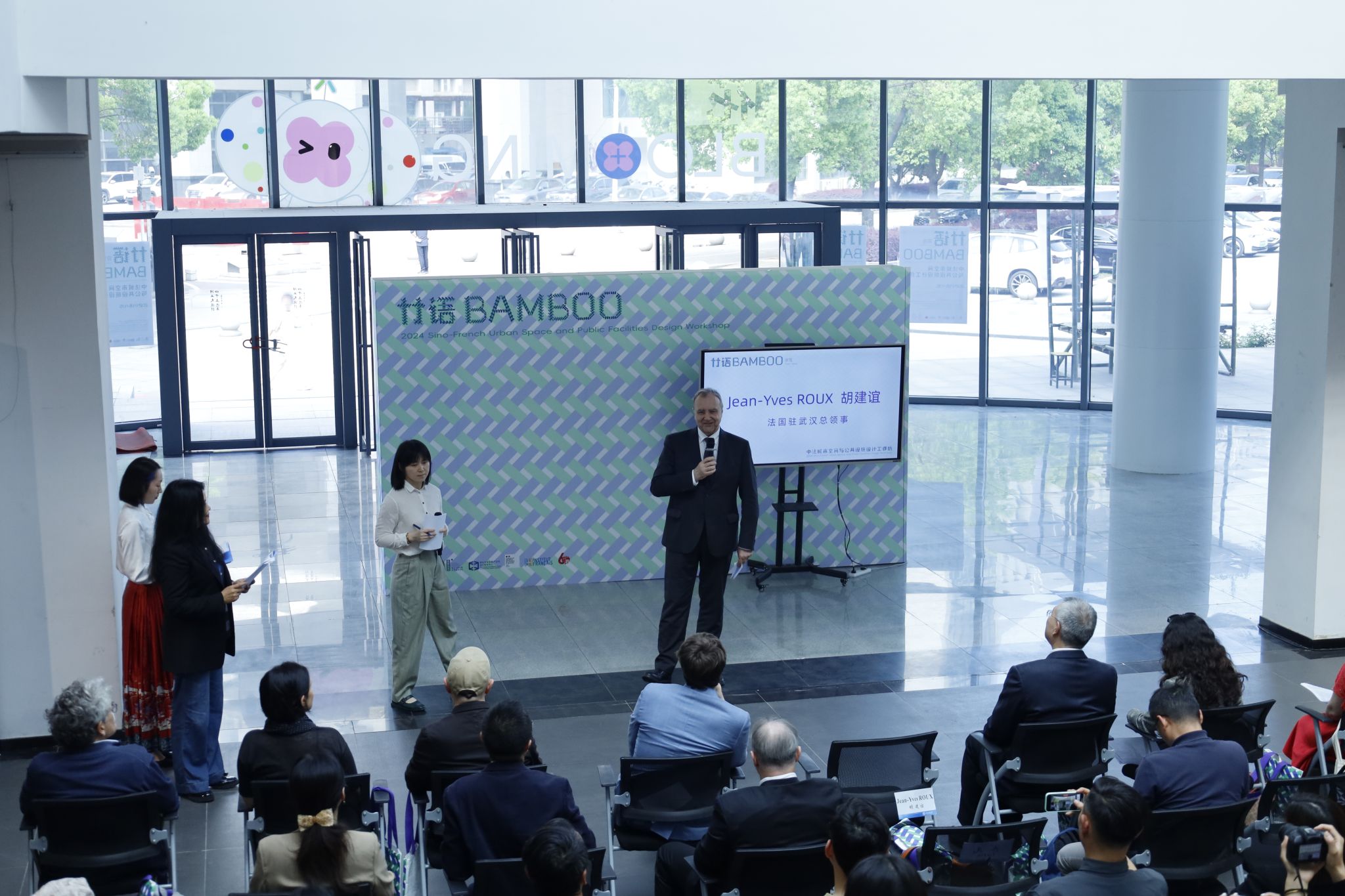 法国驻武汉总领事Jean-Yves ROUX(胡建谊)先生、法国第戎国立艺术学院院长Amel Nafti(阿梅尔·纳夫蒂)女士及参加工作坊的中外学生代表分别发表了讲话。