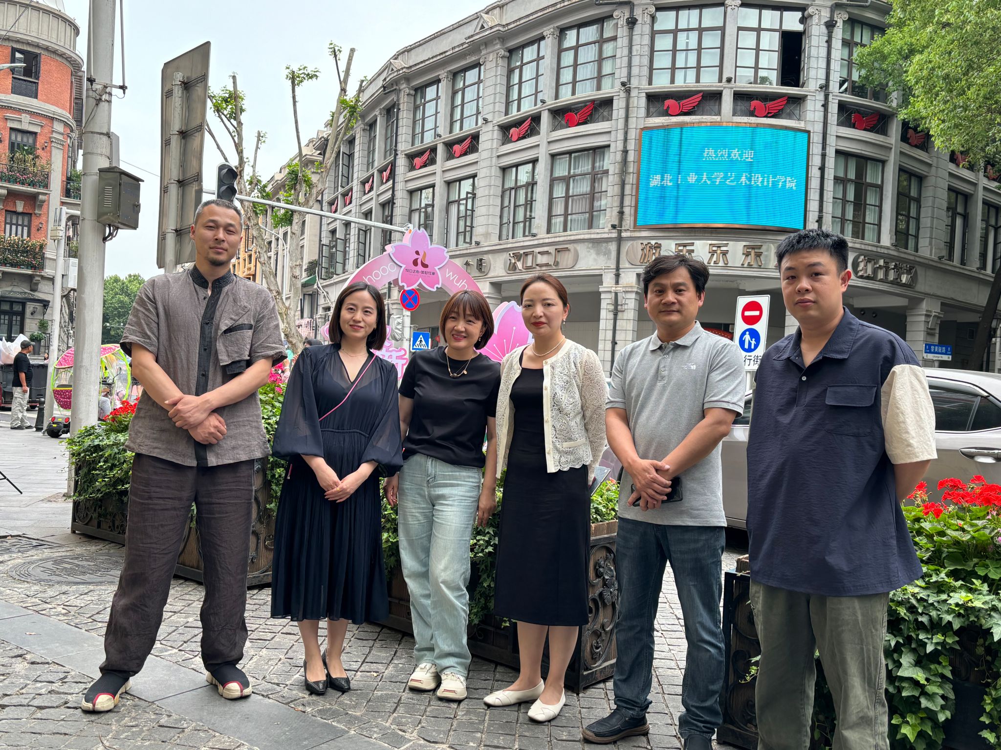 5月11日,湖北工业大学艺术设计学院党委副书记舒蕾、副院长王敏、公共艺术系主任宋志来及学工办杨佳欣一行,来到江岸区黎黄陂路文创街区,对数字文化人才创新基地进行访企拓岗及校企合作交流。