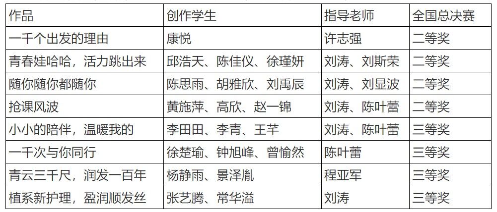 2023年9月6日,第十五届全国大学生广告艺术大赛(简称大广赛)全国总评审落下帷幕,我校艺术设计学院和数字艺术产业学院选送的作品经过激烈的赛区评选,突出重围参评国赛。在全国总评审阶段,由许志强、刘涛老师等五位老师指导的作品,分别获得国家二等奖、三等奖各四项,荣获佳绩。