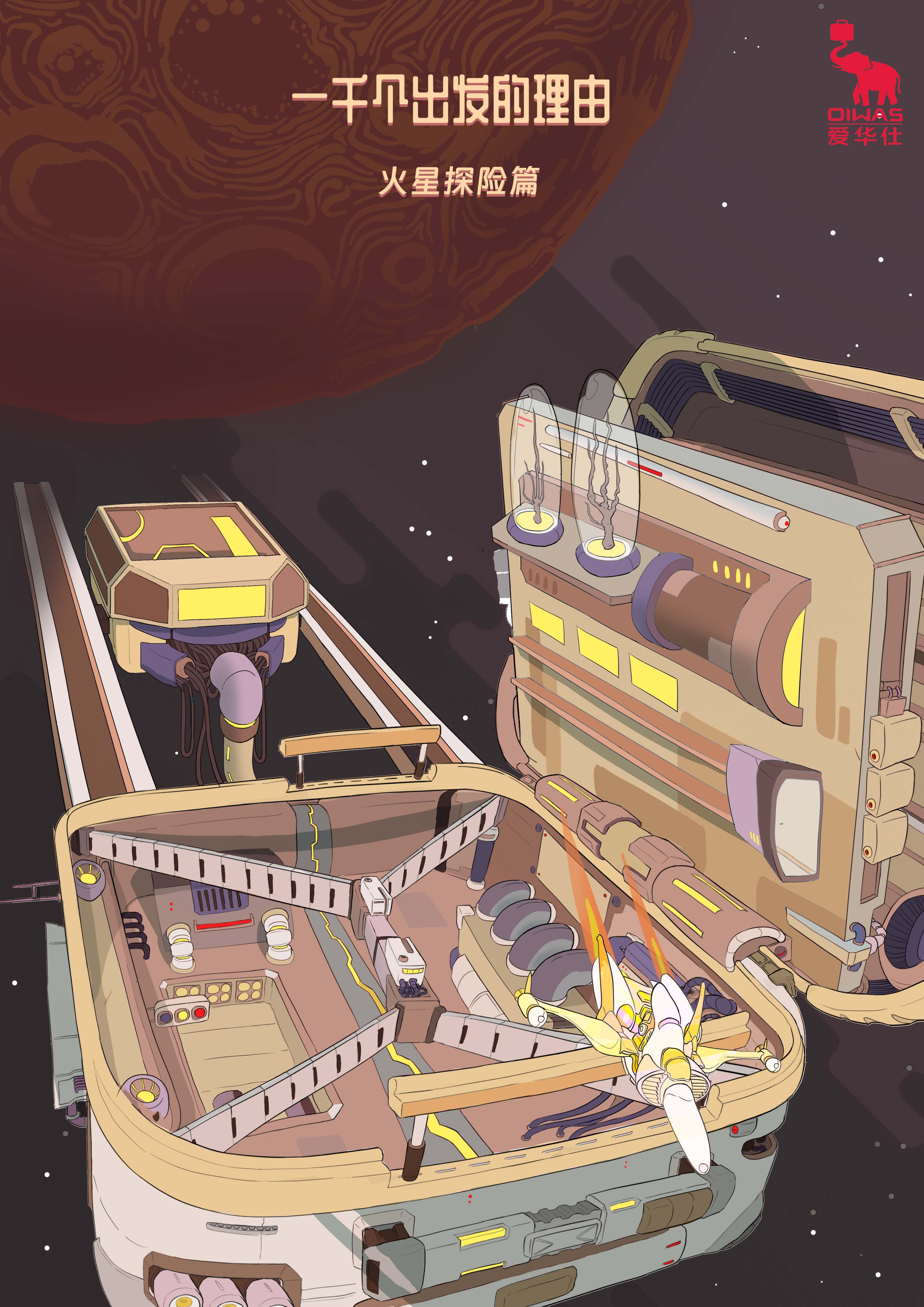 《一千个出发的理由》不局限在箱包的基本功能里,将箱包变为巨大的宇宙空间站,人们在箱中生活工作,跟随爱华仕一起辗转各个星球卫星,眼中不只是山水美景,还有无尽的银河,不但要带着箱包周游世界,更要坐上箱包傲游宇宙。