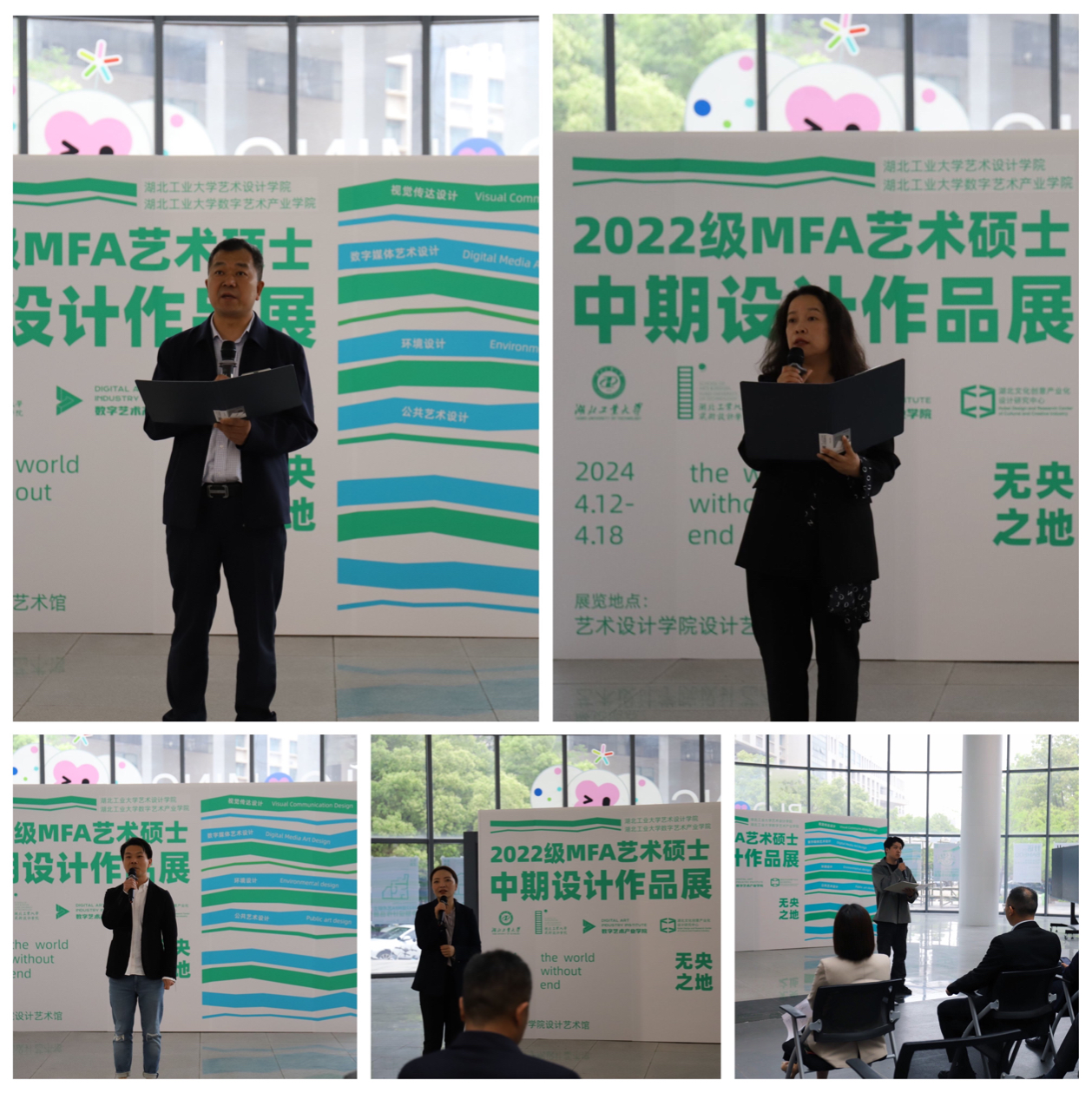 4月16日上午,湖北工业大学艺术设计学院、数字艺术产业学院2022级MFA研究生中期作品展“无央之地”在设计艺术馆开幕。研究生院领导和各办公室主任,艺术设计学院和数字艺术产业学院领导、硕士生导师及2022级MFA研究生参加了开幕式。