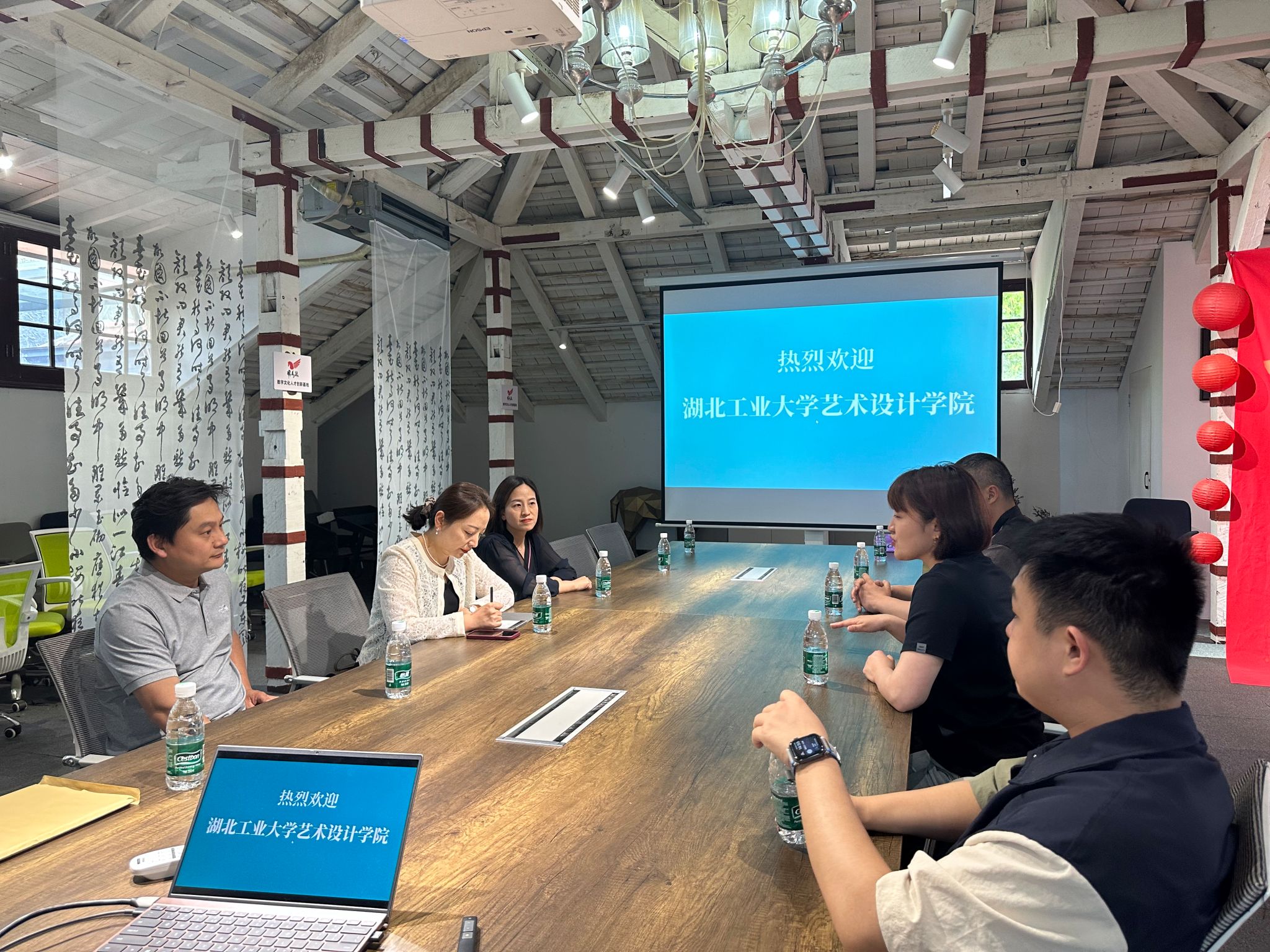 5月11日,湖北工业大学艺术设计学院党委副书记舒蕾、副院长王敏、公共艺术系主任宋志来及学工办杨佳欣一行,来到江岸区黎黄陂路文创街区,对数字文化人才创新基地进行访企拓岗及校企合作交流。
