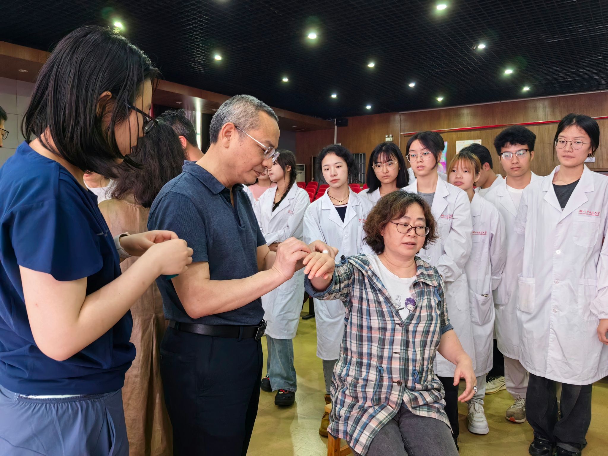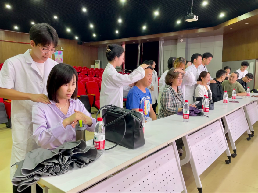 5月30下午,湖北中医药大学针灸骨伤学院院长彭锐教授带领该学院师生团队来我院,开展义诊公益服务活动,我院60余名教师参加体验。