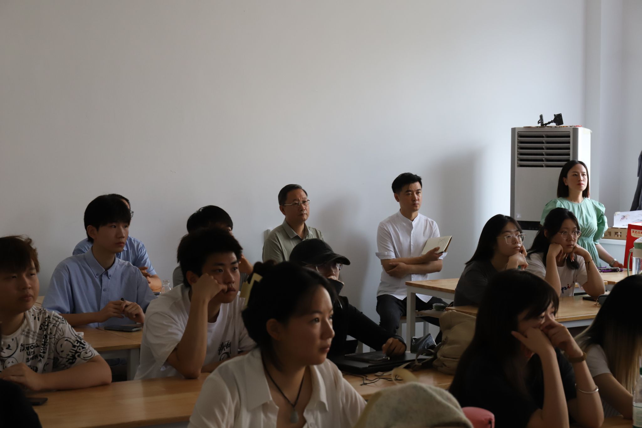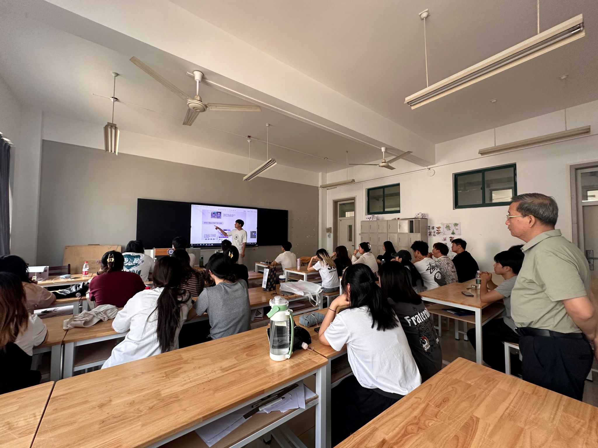 彭育园书记分别听取了不同专业班级学生的实践汇报。聆听了学生们个人实践项目介绍、实践过程、取得的成绩和个人收获等,有学生赴农村参加义务志愿服务,有到企业参与专业设计实习的等等,从汇报看,一个短学期,学生有看得见的成长,老师们对学生实践过程引导和对实践成果的点评建议。