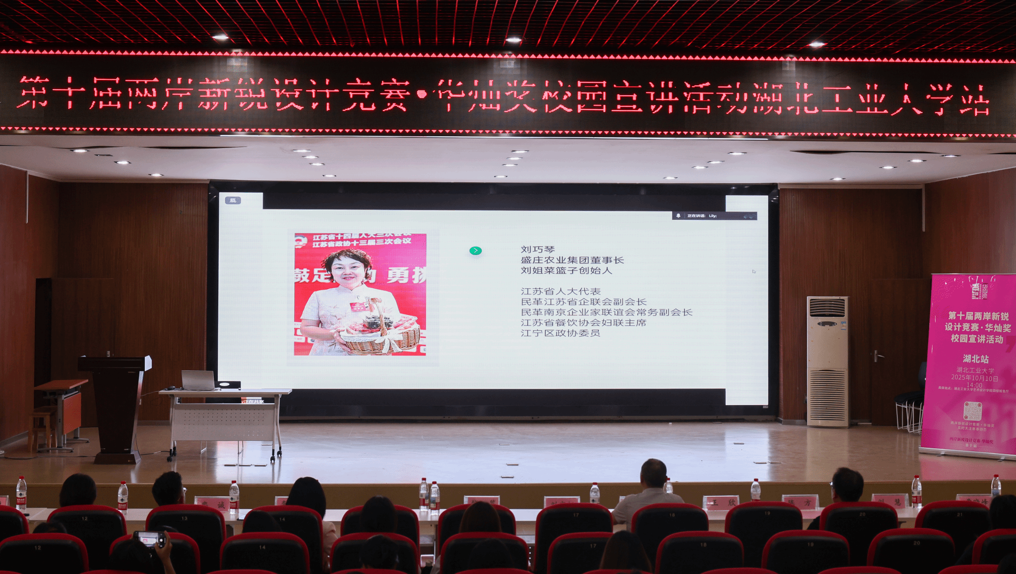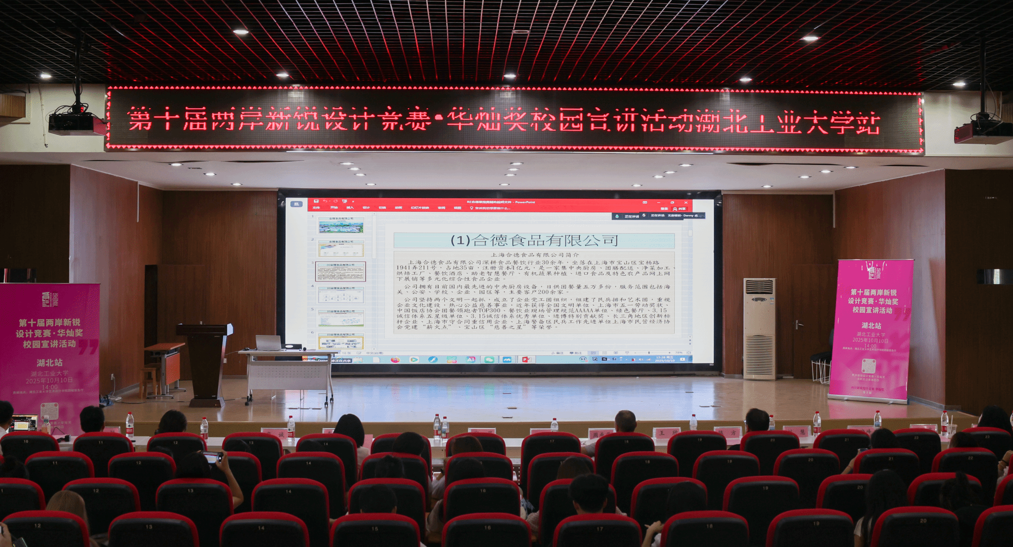 10月10日下午14点,第十届两岸新锐设计竞赛·华灿奖校园宣讲会湖北站,在湖北工业大学成功举办。华灿工场项目总监刘宇轩代表组委会进行宣讲,湖北工业大学及湖北赛区兄弟院校领导、师生共200余名参与互动。活动伊始,湖北工业大学艺术设计学院副院长、华灿奖湖北赛区秘书长周承君教授满怀热忱地为大家简要介绍了华灿奖和本次活动。