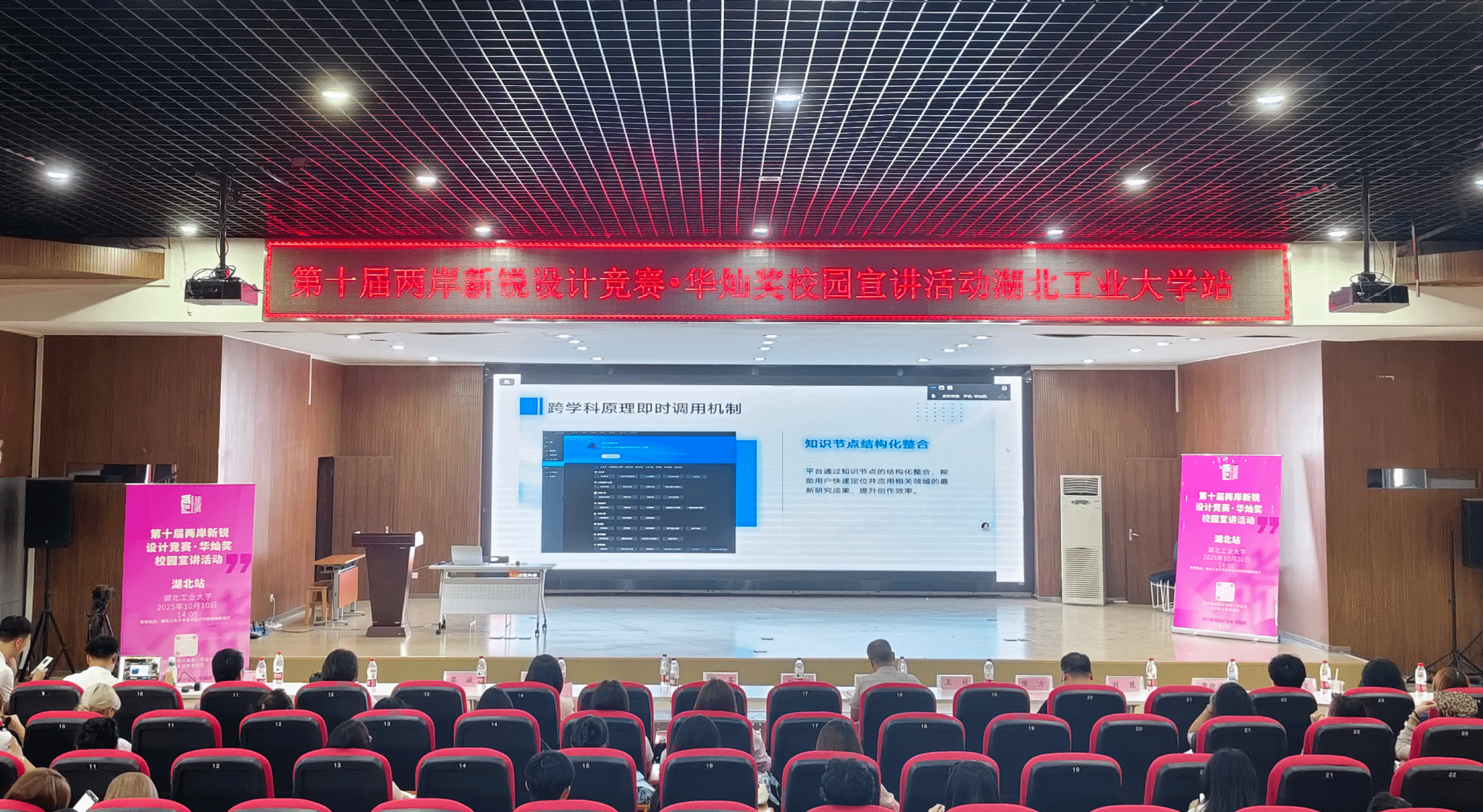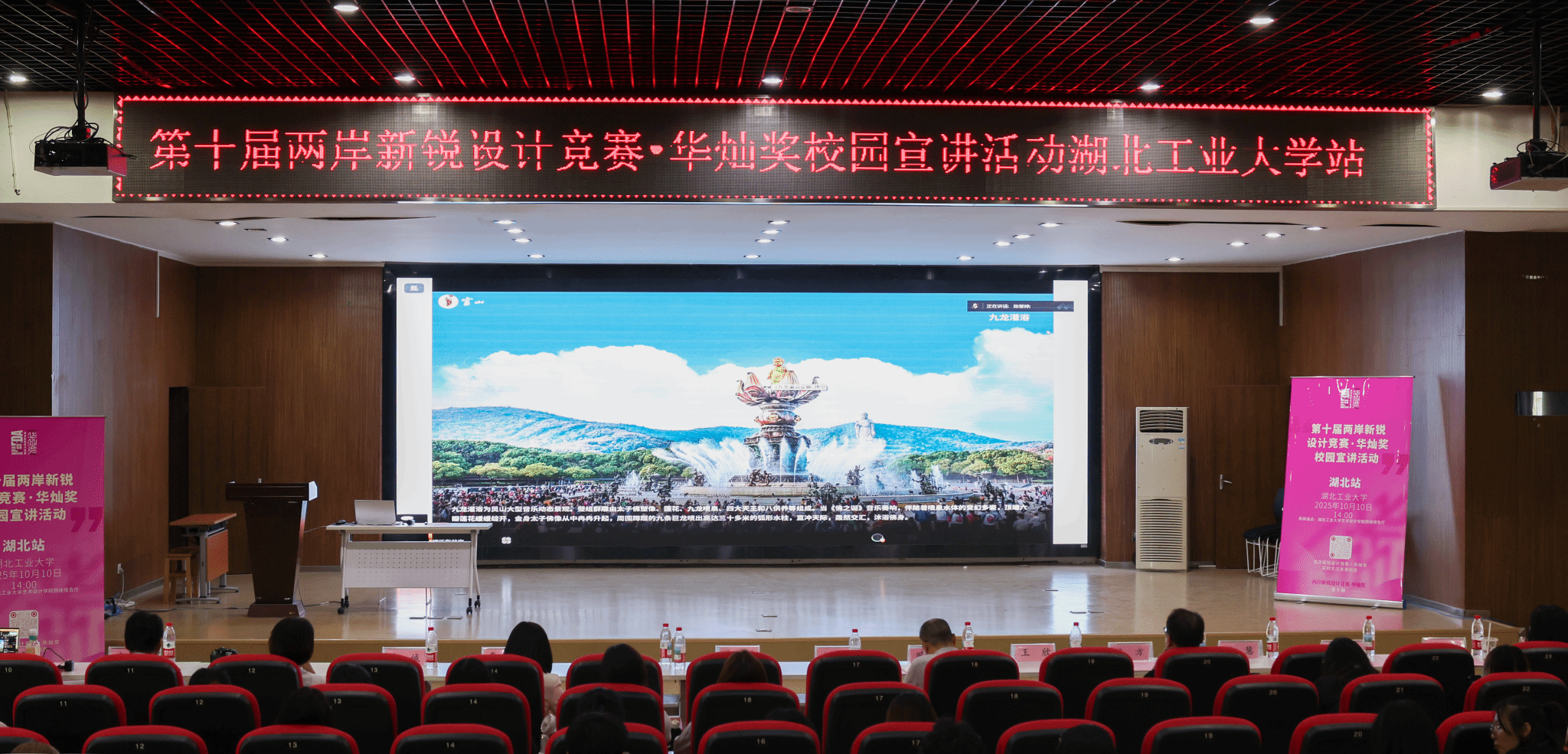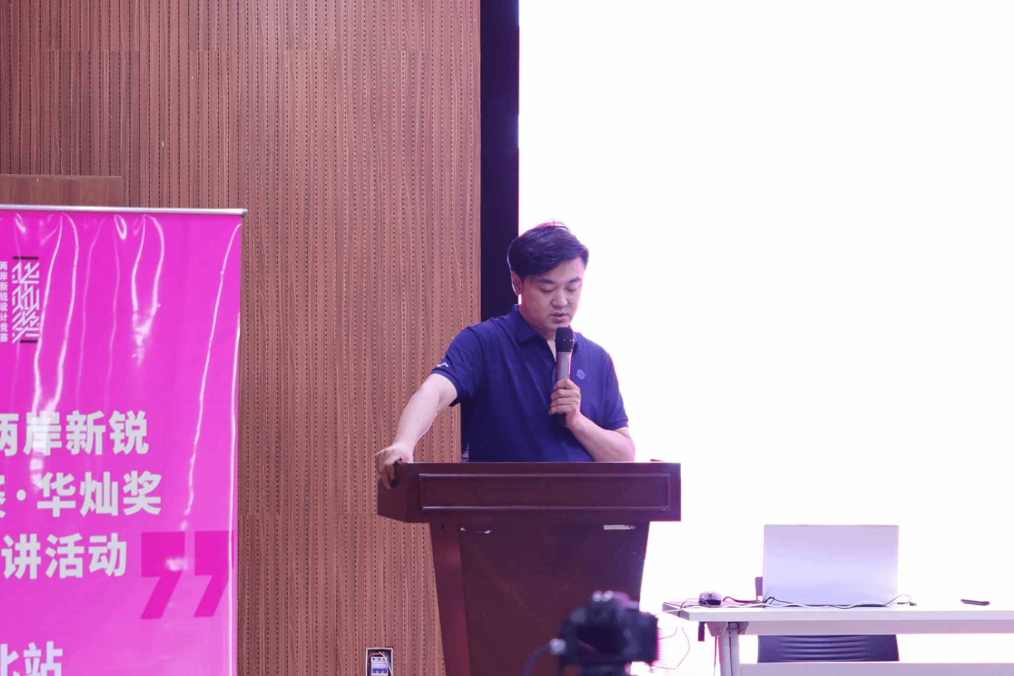 主持人刘宇轩(华灿奖组委会、华灿工场(北京)科技发展有限公司项目总监)手持话筒,以沉稳而富有感染力的语调开启分享:华灿奖作为国内极具影响力的创意赛事,始终秉持‘激发创意潜能,赋能产业发展’的理念。赛事涵盖文创设计、数字创意、工业设计等多个领域,为广大创意从业者与爱好者搭建了展示、交流、成长的优质平台。对于湖北工业大学的师生而言,华灿奖是检验创意成果、与行业前沿对话的重要窗口。期待大家积极参与,以创意为笔,书写属于自己的精彩篇章。