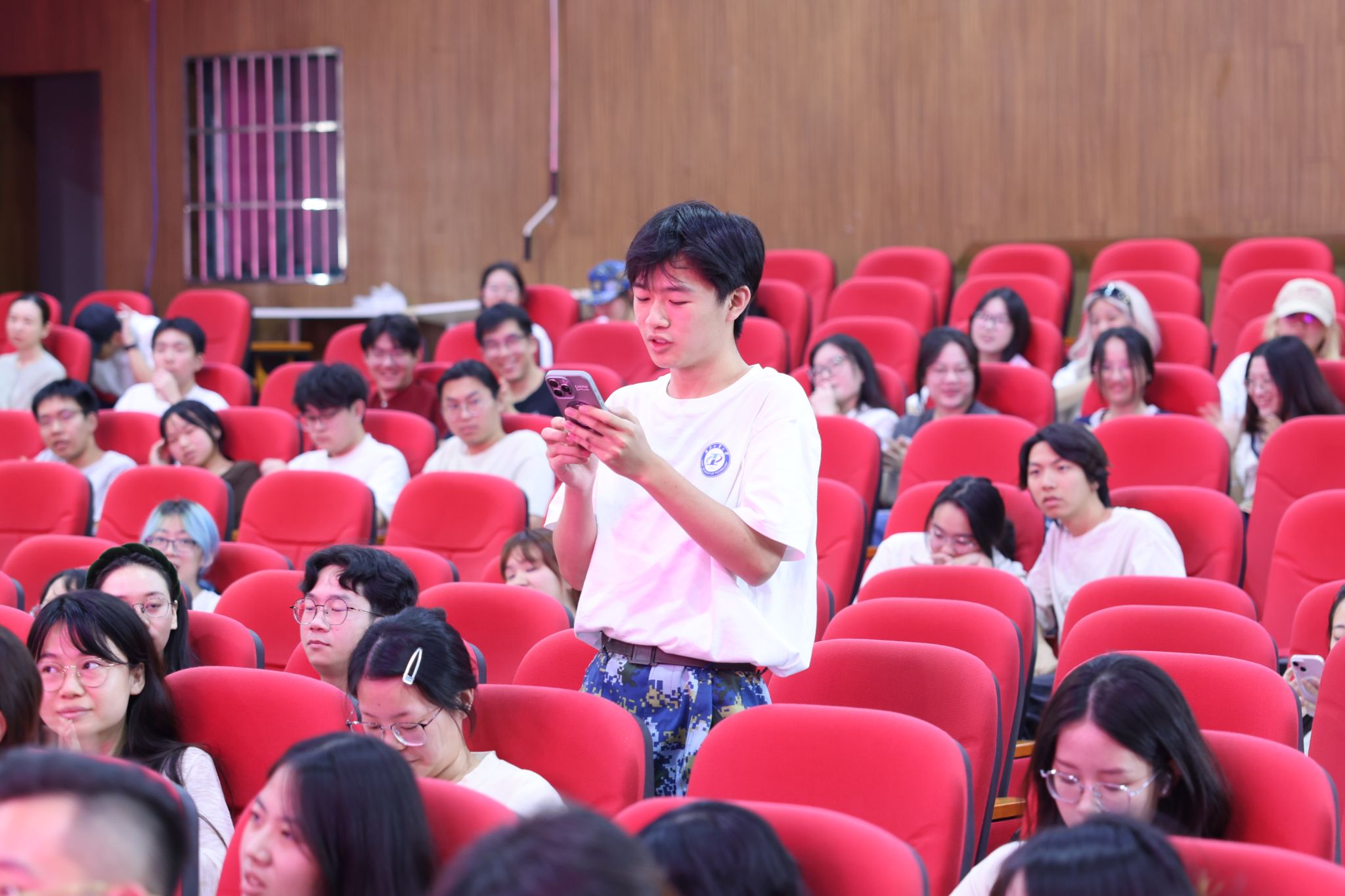 在详细介绍完华灿奖创意赛道与定向赛道后,主持人刘宇轩随即开启互动环节。他围绕赛道细节提问,邀请学生分享观点,现场学子积极举手应答。对每位发言学生,刘宇轩总监均给予肯定,并亲手送上礼品,以表鼓励,现场氛围轻松热烈。