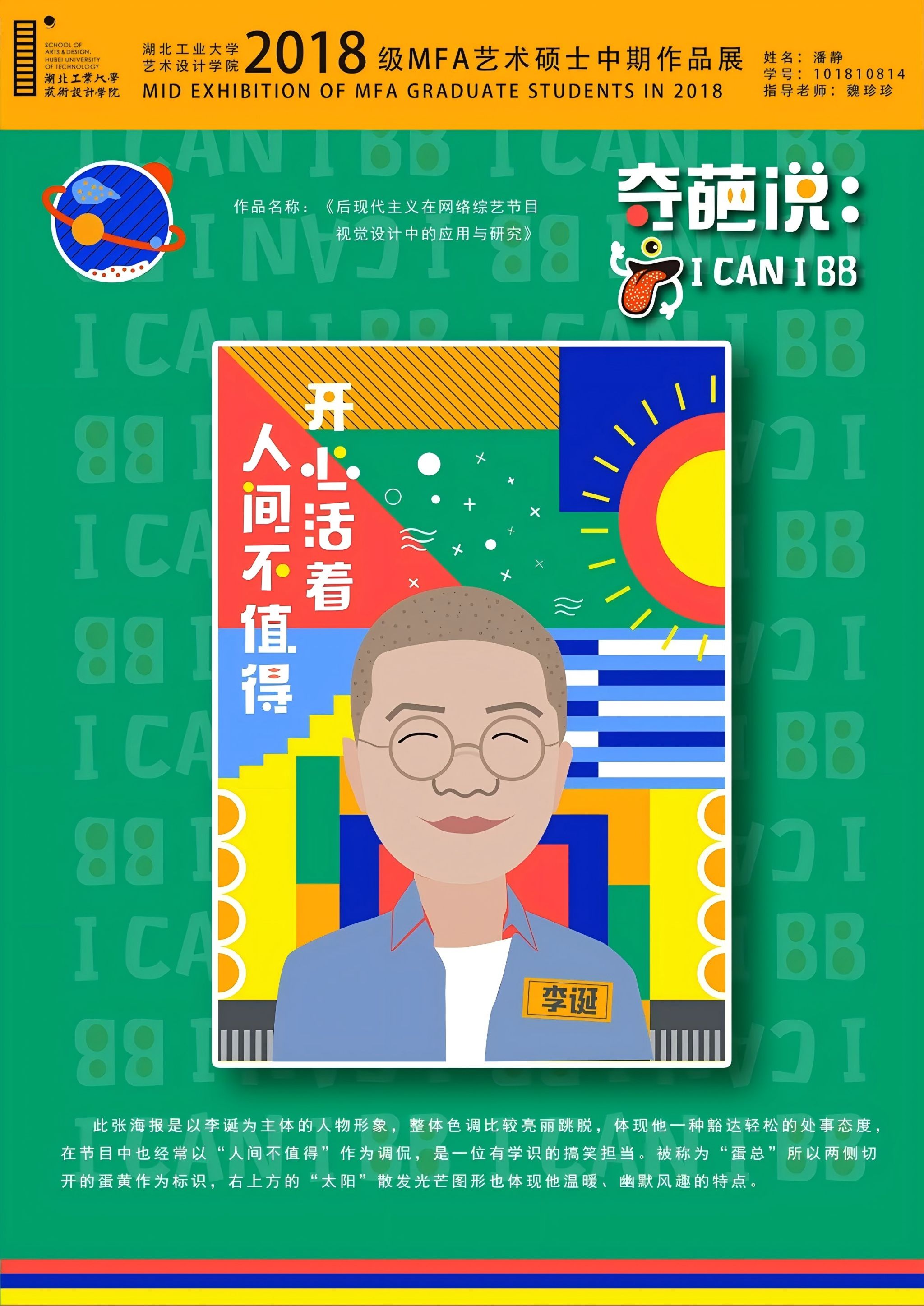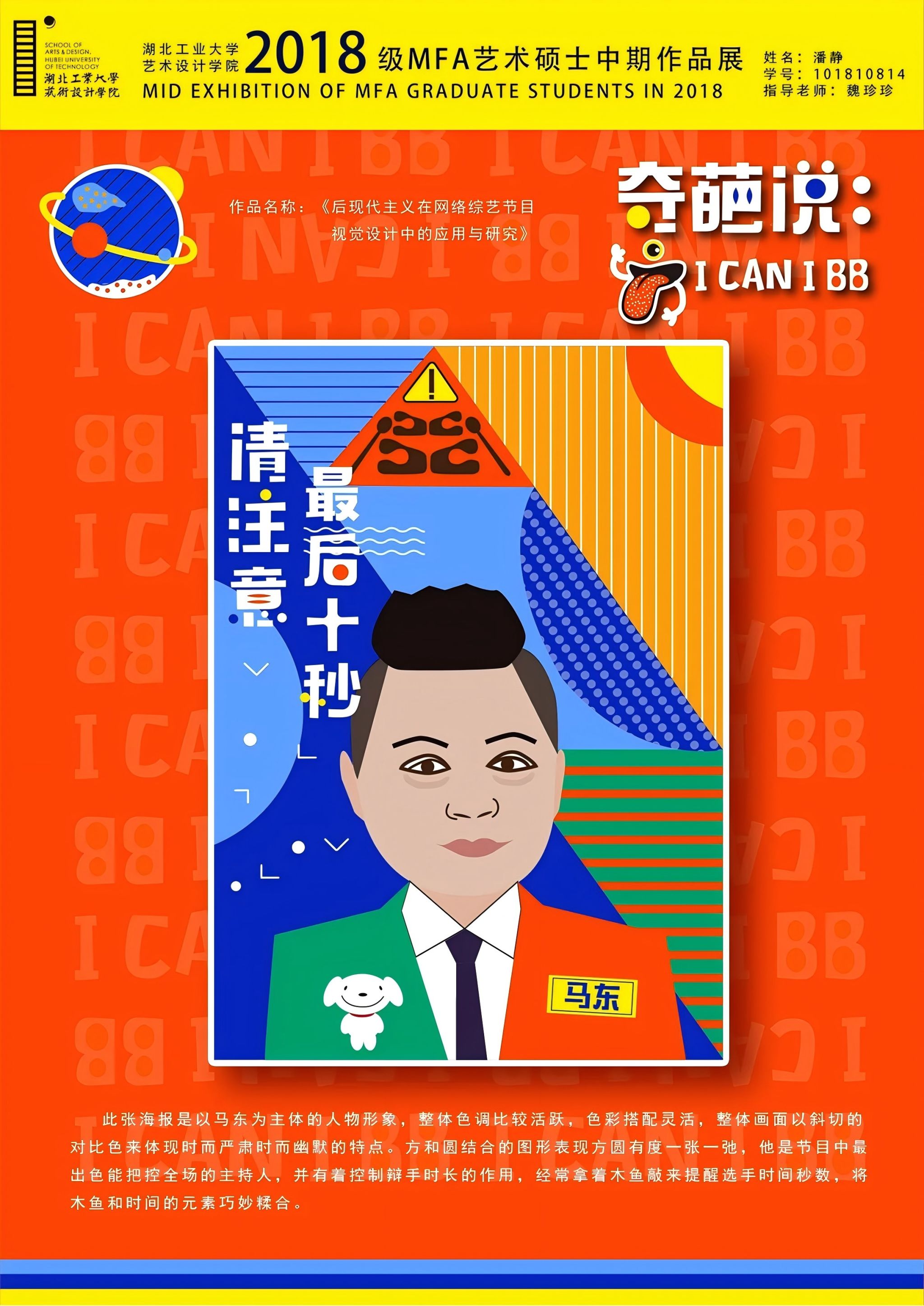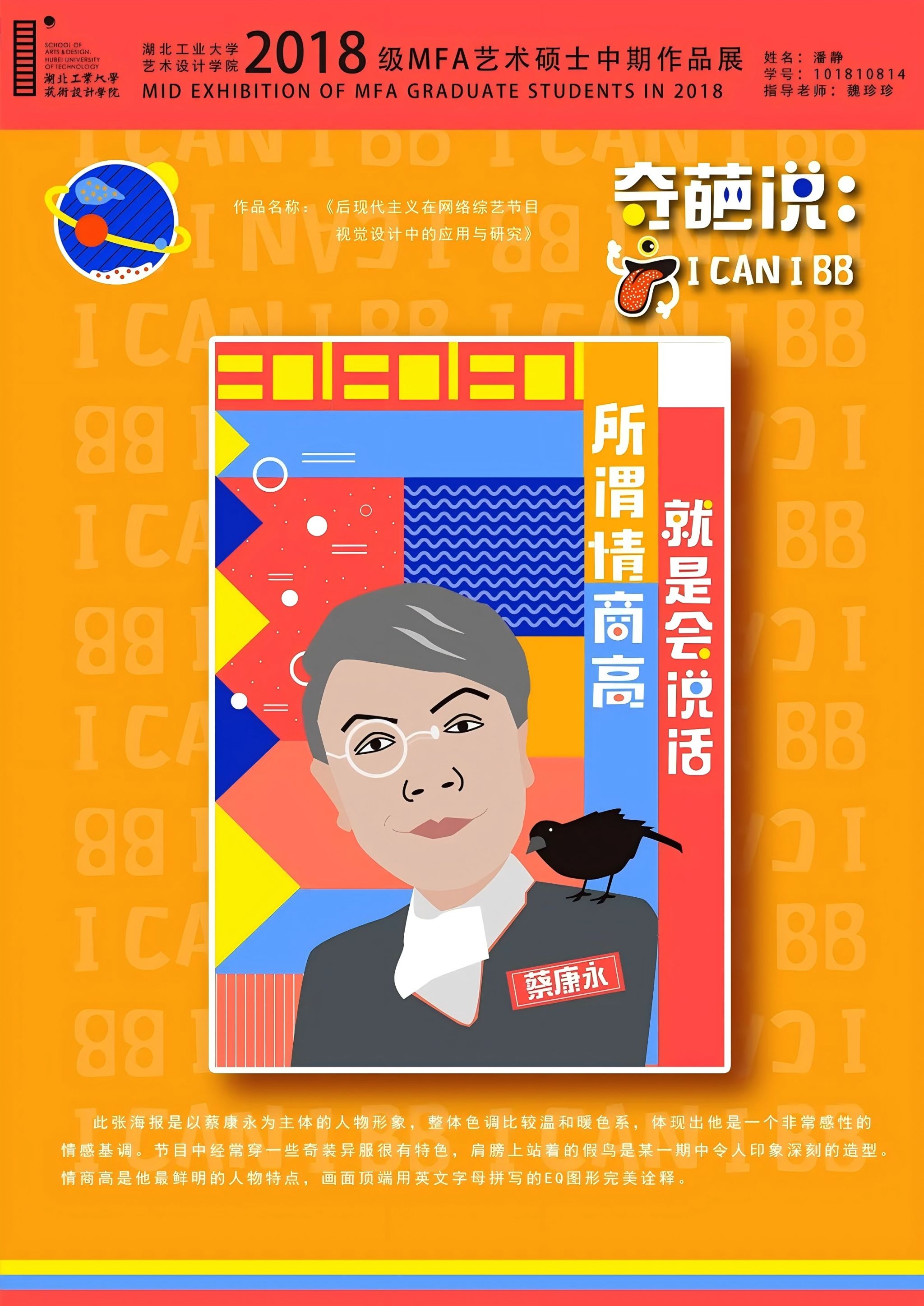此次作品主要基于对后现代主义在设计中的理论研究,以爱奇艺自制的网络综艺节目《奇葩说》例进行海报设计,秉承多元、年轻、有趣的设计理念,打造不一样的视觉效果。通过红黄监三原色撞色搭配出来的复古新奇风格,强烈的视觉冲击深受年轻人的喜爱,利用后现代设计元素的表现手法在整体画面中拼贴解构、碎片化、扁平化等,以及几何图形的抽象具象的结合,将符号语言隐喻其中突出具有趣味性的多元化价值观。