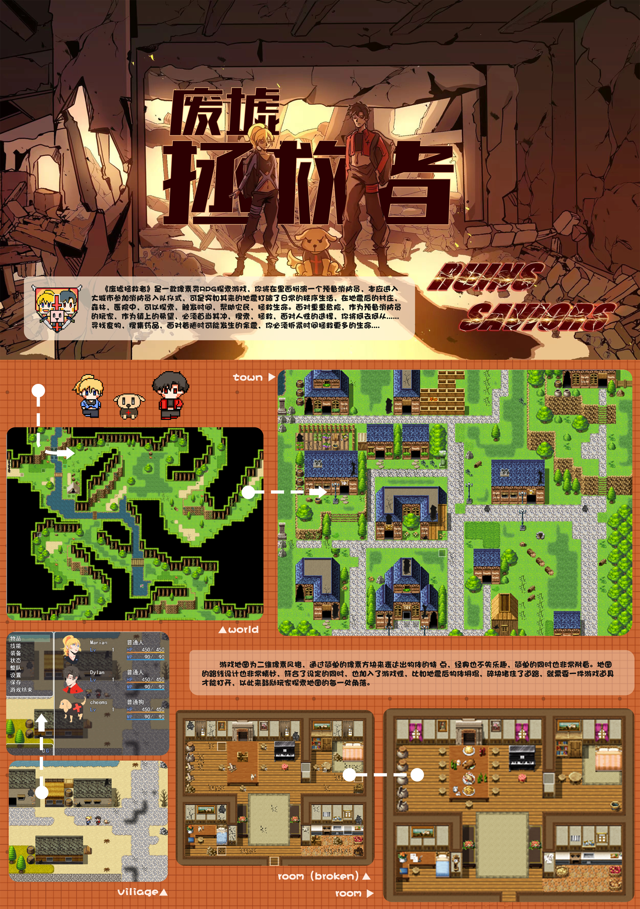 《废墟拯救者》是一款像素类RPG探索游戏,游戏的故事背景设定为18世纪的欧洲,在当时的年代,物资匮乏,战争频发,人类面对天灾与战争是多么艰辛与无奈。游戏角色设定为想要去帮助处在战争与天灾发生地段。通过此游戏可以让玩家了解当灾难发生时需要耗费多少的经历去重建家园。