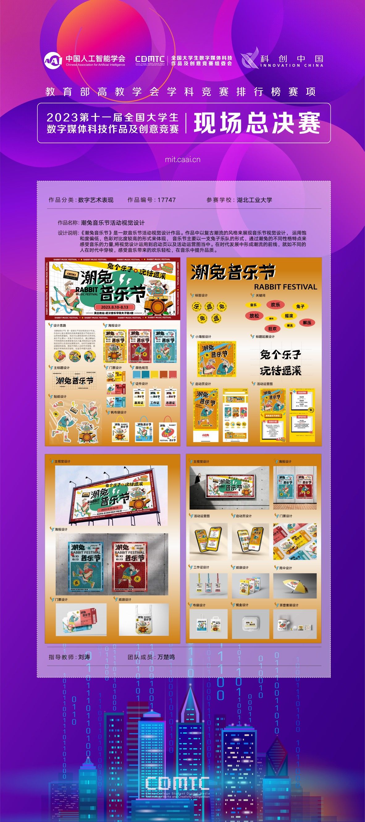 《潮免音乐节》是一款音乐节活动视觉设计作品。作品中以复古潮流的风格来展现音乐节视觉设计,运用饱和度偏低,色彩对比度较高的形式来体现,音乐节主要以一支兔子乐队的形式,通过潮免的不同性格特点来感受音乐的力量,将视觉设计运用到启动页以及活动运营图当中。在时代发展中形成潮流的前线,就如不同的人在时代中穿梭,感受音乐带来的欢乐轻松,在音乐中提升品质。
